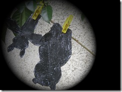 Setelah mendapatkan keseimbangannya kembali, Anak Kelelawar bergelantungan di kusen jendela Anak Beruang
